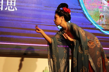长相思,在长安;所思为何?不过宫中院、院中池、池中月、月中仙。慢束罗衣缓停步,遍地榴花染舞裙——身着唐制华服的张妤思一登场便将我们拉回千年前的亭台楼阁,歌声悠婉,低吟浅唱;轻歌曼舞,美轮美奂。唇边一点胭脂,真真是“绣口一吐,就半个盛唐”。