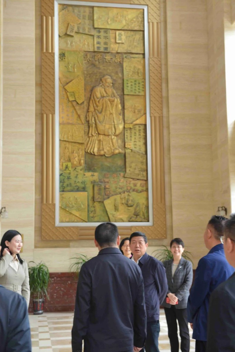 国际汉语文化学院副院长、基地副主任丁安琪,汉语教师培训中心主任戴岚热情接待了云南师范大党委书记饶卫带领的代表团,并陪同参观了基地一楼中华文化体验区。