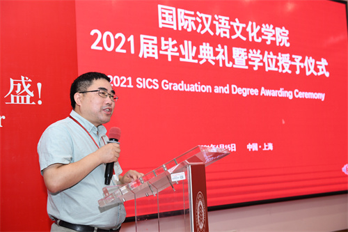On the afternoon of June 16, 2021, the School of International Chinese Studies of East China Normal University held the graduation ceremony and degree awarding ceremony for the class of 2021 in the lecture hall on the second floor of the Physics Building of Zhongbei Campus.